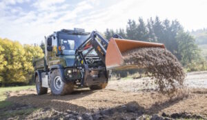 Der Unimog U 219 zeigt sich auf der Agritechnica als kompakter und vielseitiger Geräteträger für den Ganzjahreseinsatz. Mit einem Radstand von 2.800 Millimetern und einer zulässigen Höchstgeschwindigkeit von 89 km/h ist er für seine kommunalen Tätigkeiten zugleich wendig und schnell unterwegs. Über die Frontanbauplatte sowie den Frontzapfwellenabtrieb lassen sich vielfältige Geräte nutzen. Auf der diesjährigen Agritechnica wird das Fahrzeug exemplarisch mit Mähausleger UNA 600 und Ast- und Wallheckenschere AWS 22 von Dücker und Streuautomat Yeti W16 von Bucher gezeigt. Mit dieser Kombination kann der Unimog U 219 im Winter morgens zur Glättebekämpfung eingesetzt werden und danach in der Gehölzpflege unterstützen. Die umfassende LED-Beleuchtung – von Blitzleuchten über Fern- und Arbeitsscheinwerfer bis hin zu beheizten Zusatzscheinwerfern – sorgt für möglichst gute Sicht und hohe Sicherheit bei Fahrten und Arbeitseinsätzen in den frühen Morgenstunden oder bei Nacht.
