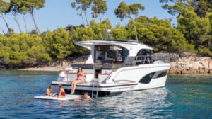 Die Marex 390 ist mit verschiedenen Motoroptionen erhältlich, um unterschiedlichen Fahrvorlieben gerecht zu werden. Die Eigner haben die Wahl zwischen Volvo Penta Z- Antrieben oder, zu einem späteren Zeitpunkt, Wellenantrieb Motorisierung mit Mercury Motoren. Großzügige Kraftstoff- und Wassertankkapazitäten machen das Boot ideal für ausgedehnte Fahrten bei komfortablen Reisegeschwindigkeiten. Für zusätzlichen Komfort sorgt die Marex-Pilotentür, die einen einfachen Zugang zum Seitendeck ermöglicht. Sie vereinfacht das Anlegen und Manövrieren und verbessert gleichzeitig die Belüftung an Bord. Der neue Pilotensessel bietet mehr Komfort und Luxus: Alcantara-Polsterung mit einem eleganten Muster und einstellbarer Positionierung für ein außergewöhnliches Fahrerlebnis